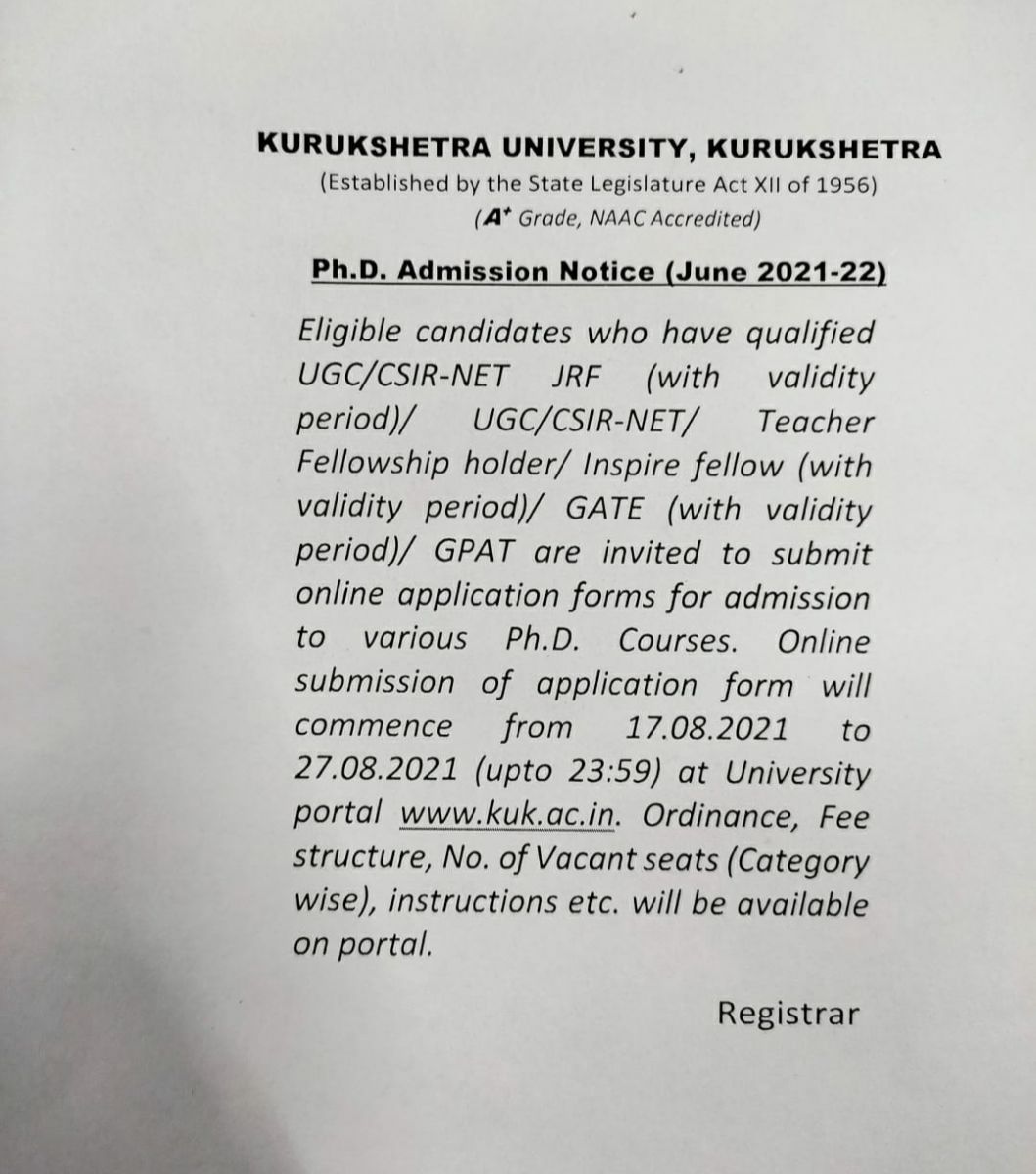 Address:  Kurukshetra University, Thanesar, Haryana 136119